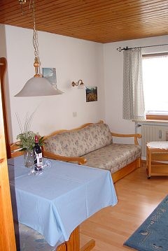 Unsere Ferienwohnung ist für bis zu drei Personen nutzbar und bietet Ihnen auf XX qm alles, was es für einen Urlaub braucht. ein Schlafzimmer mit Doppelbett, ein Wohnraum mit Ausziehcouch und einer gemütlicher Sitzecke mit Esstisch einen Balkon SAT-TV Radio und CD-Player eine neue Küche separat ein Badezimmer mit Dusche/WC